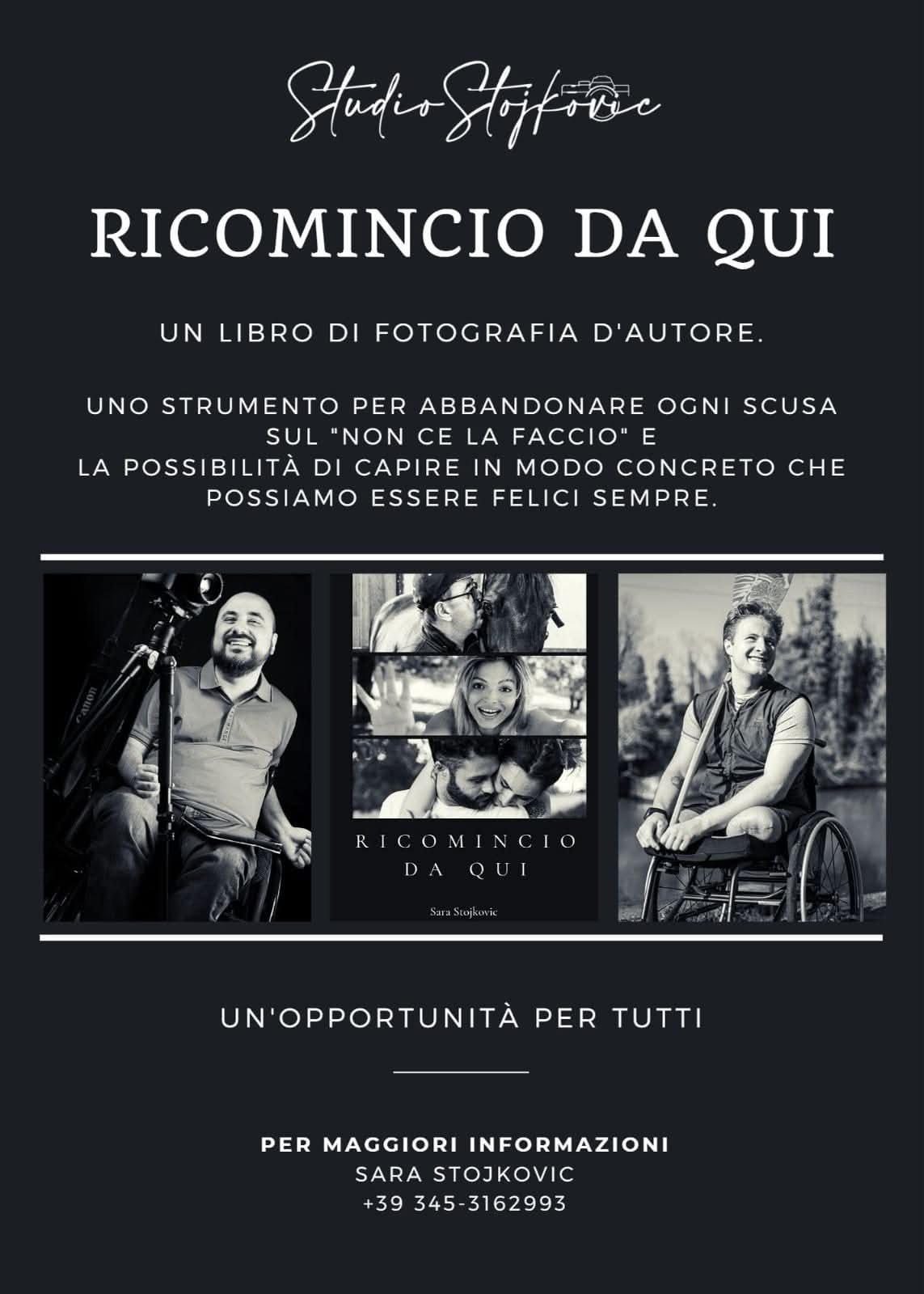 “Ricomincio da qui” è una raccolta di dimostrazioni scritte e fotografiche e vuole essere una testimonianza reale, concreta e diretta su quello che è la vita e su quello che può essere.